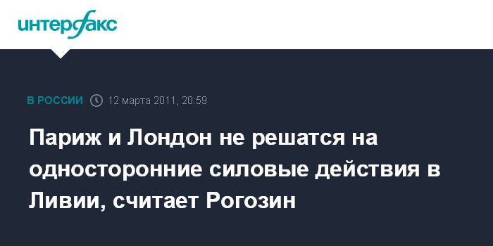 Париж и Лондон не решатся на односторонние силовые действия в Ливии, считает Рогозин