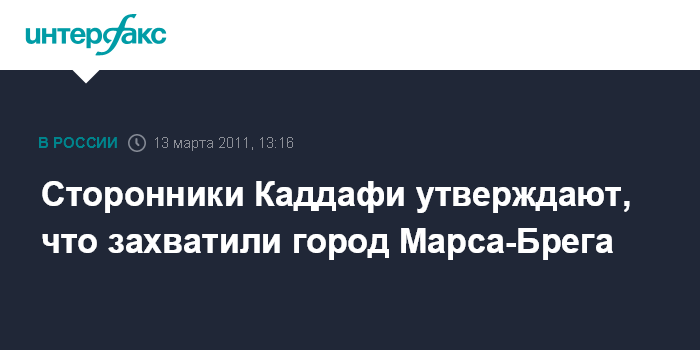 Каир. 13 марта. INTERFAX.RU - Город Марса-Брега, до сих пор находившийся под контролем сил ливийской оппозиции, перешел в воскресенье в руки верных Муамару Каддафи сил, сообщило местное государственное телевидение. По данным телеканала, этот город уже "очищен" от сил оппозиции.