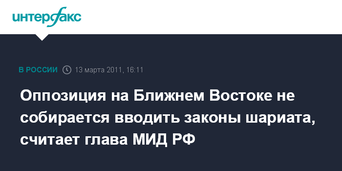 Оппозиция на Ближнем Востоке не собирается вводить законы шариата, считает глава МИД РФ