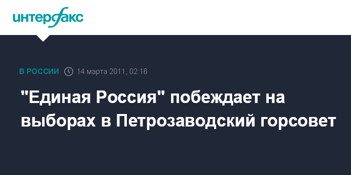 Петрозаводск. 14 марта. ИНТЕРФАКС СЕВЕРО-ЗАПАД - На выборах депутатов в Петрозаводский городской совет, по предварительным данным, лидируют кандидаты от партии "Единая Россия".