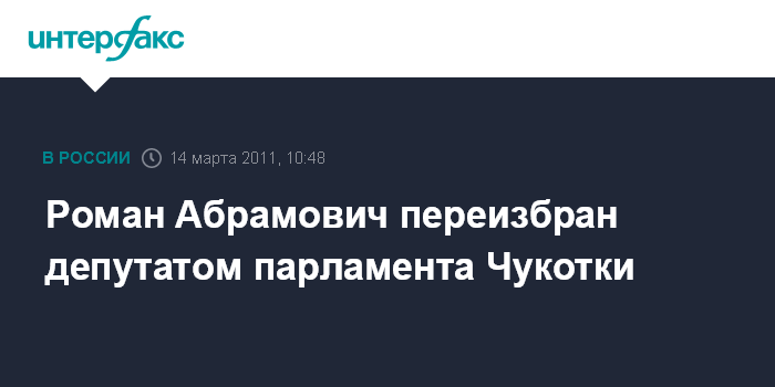 Москва. 14 марта. INTERFAX.RU - Миллиардер и экс-губернатор Чукотки Роман Абрамович вновь избран в Думу Чукотского автономного округа.