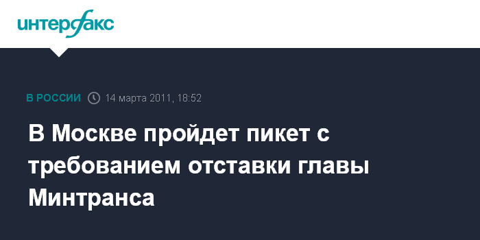 В Москве пройдет пикет с требованием отставки главы Минтранса