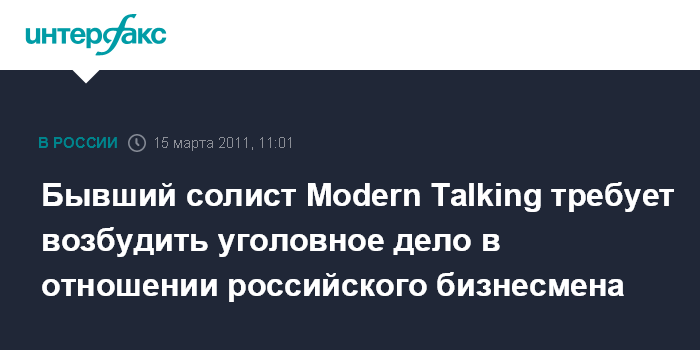 Бывший солист Modern Talking требует возбудить уголовное дело в отношении российского бизнесмена