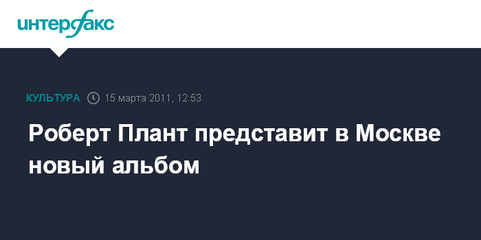 Москва. 15 марта. INTERFAX.RU - Двадцать девятого июля 2011 года на сцене столичного "Крокус Сити Холл" выступит бывший фронтмен группы Led Zeppelin Роберт Плант. Спустя три года после выхода предыдущего альбома, получившего шесть премий Грэмми, Роберт Плант представит публике свою новую работу - альбом "Band Of Joy".