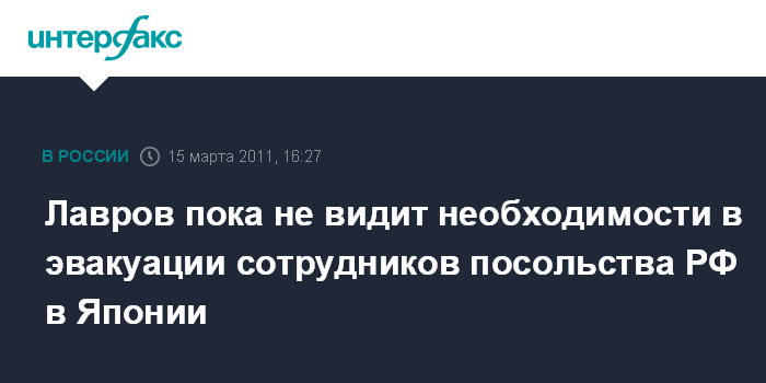 Лавров пока не видит необходимости в эвакуации сотрудников посольства РФ в Японии