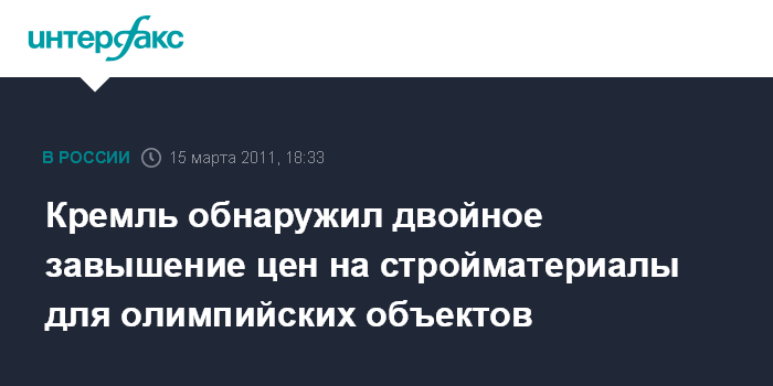 Кремль обнаружил двойное завышение цен на стройматериалы для олимпийских объектов