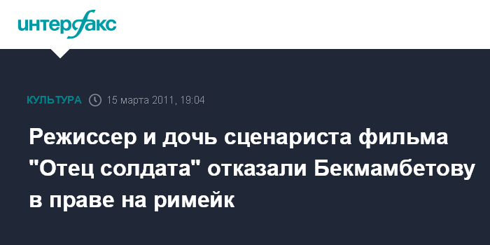 "Более того, в феврале 2011 г. в разговоре с Ольгой Жгенти г-н Бекмамбетов заявил, что не намерен приобрести права на римейк, и просил устного согласия от наследников сценариста на использование сюжета "Отца солдата" для своего будущего фильма", - говорится в заявлении.