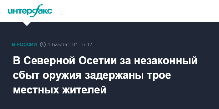 "В ходе проведенных оперативных мероприятий было установлено, что в Северной Осетии несколько жителей занимались незаконным сбытом огнестрельного оружия. В результате проведенных спецмероприятий в Ирафском, Дигорском районах республики, а также в городе Владикавказе задержаны трое местных жителей. У них изъято четыре автомата и один пистолет", – сказал собеседник агентства.