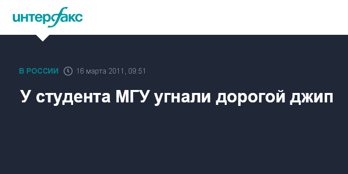 Москва. 16 марта. INTERFAX.RU - Во вторник днем на западе столицы у студента четвертого курса МГУ им.Ломоносова злоумышленник похитил иномарку стоимостью около 3 млн рублей, сообщил "Интерфаксу" источник в правоохранительных органах.