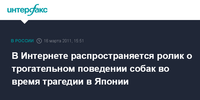 Москва/Токио. 16 марта. INTERFAX.RU - Видеокадры под названием "Суперверность" (Ultimate Loyalty), на которых японский пес, оставшийся после цунами без хозяев, охраняет своего раненого друга, вышел в последние часы в лидеры просмотров на YouTube.