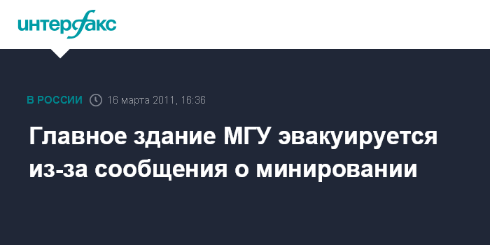 Москва. 16 марта. INTERFAX.RU - Из главного здания МГУ имени Ломоносова на Воробьевых горах эвакуируются люди в связи с поступлением анонимного сообщения о заложенной в здании бомбе, сообщили "Интерфаксу" в пресс-службе вуза.
