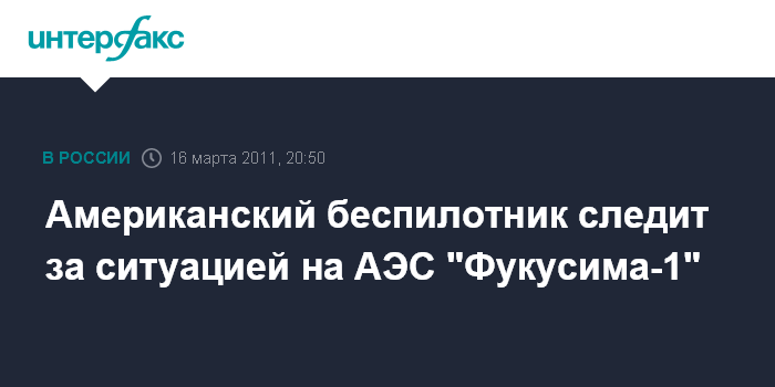 Токио. 16 марта. INTERFAX.RU - Беспилотный самолет ВВС США в среду совершает облет района, в котором расположена японская АЭС "Фукусима-1", передают местные СМИ.