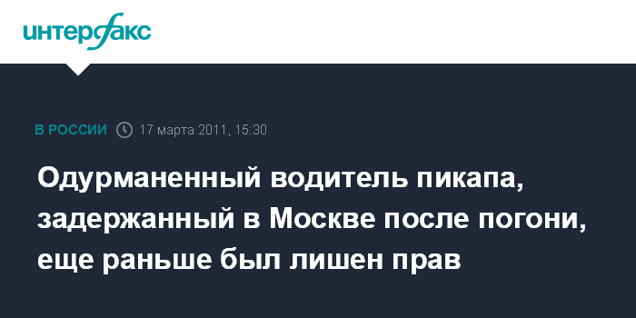 Одурманенный водитель пикапа, задержанный в Москве после погони, еще раньше был лишен прав