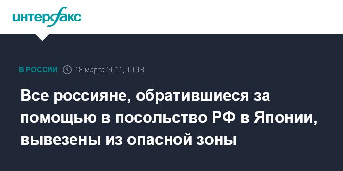 Все россияне, обратившиеся за помощью в посольство РФ в Японии, вывезены из опасной зоны