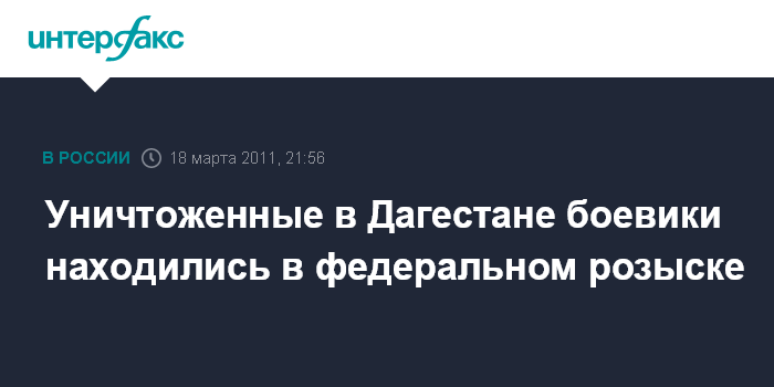 Махачкала. 18 марта. INTERFAX.RU - Установлены личности ликвидированных в пятницу в Хасавюртовском районе Дагестана боевиков и их пособника, сообщили "Интерфаксу" в информационном центре НАК России.
