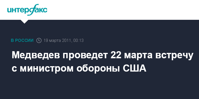 Москва. 19 марта. ИНТЕРФАКС - Президент РФ Дмитрий Медведев 22 марта примет министра обороны США Роберта Гейтса, говорится в сообщении на сайте Кремля.