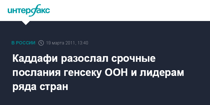 Каддафи разослал срочные послания генсеку ООН и лидерам ряда стран