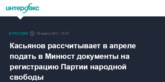 Касьянов рассчитывает в апреле подать в Минюст документы на регистрацию Партии народной свободы