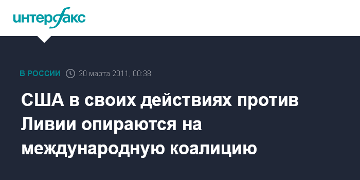 Вашингтон. 20 марта. ИНТЕРФАКС - Президент США Барак Обама заявляет, что военная операция против Ливии носит ограниченный характер и проводится международной коалицией.