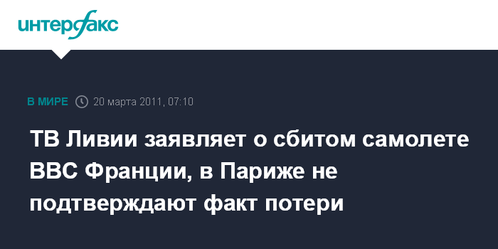 ТВ Ливии заявляет о сбитом самолете ВВС Франции, в Париже не подтверждают факт потери