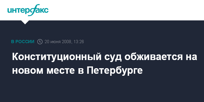 Москва. 20 июня. INTERFAX.RU - Председатель Конституционного суда России Валерий Зорькин сообщил, что в Санкт-Петербурге, куда переехала высшая судебная инстанция, идет процесс обживания.
