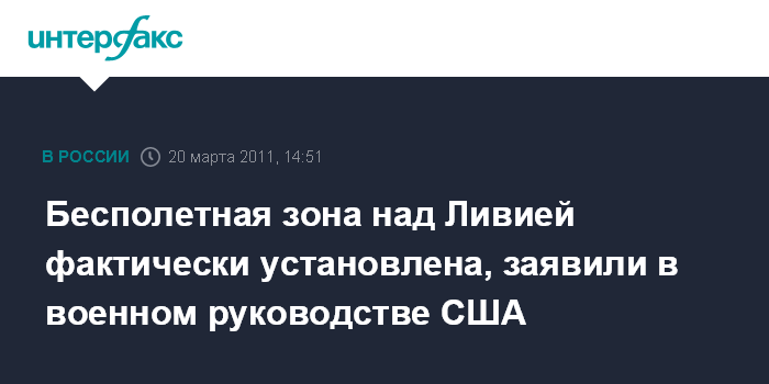 Бесполетная зона над Ливией фактически установлена, заявили в военном руководстве США