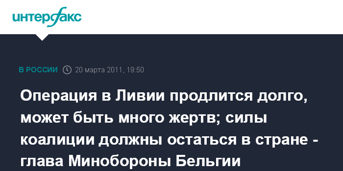 Операция в Ливии продлится долго, может быть много жертв; силы коалиции должны остаться в стране - глава Минобороны Бельгии