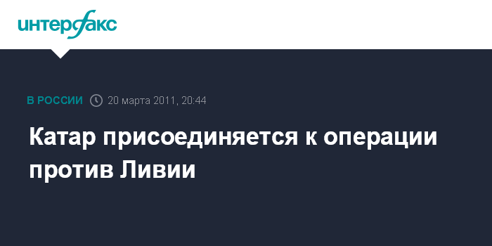 Москва. 20 марта. ИНТЕРФАКС - Для участия в антиливийской операции Катар готов предоставить коалиции четыре истребителя, передает британская телерадиовещательная корпорация BBC со ссылкой на представителей США и Франции.