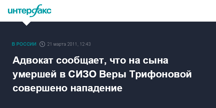 Адвокат сообщает, что на сына умершей в СИЗО Веры Трифоновой совершено нападение