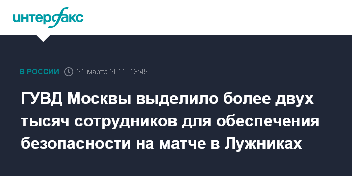 ГУВД Москвы выделило более двух тысяч сотрудников для обеспечения безопасности на матче в Лужниках