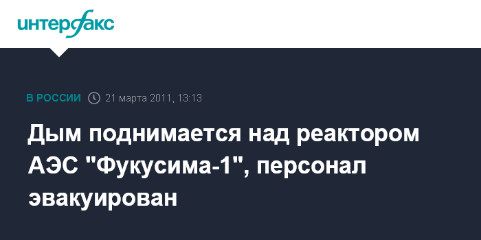 Дым поднимается над реактором АЭС "Фукусима-1", персонал эвакуирован