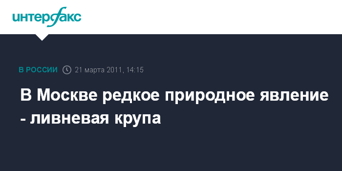 Москва. 21 марта. INTERFAX.RU - В российской столице в понедельник наблюдается достаточно редкое природное явление - ливневая крупа, сообщили "Интерфаксу" в Гидрометеобюро Москвы и Московской области.