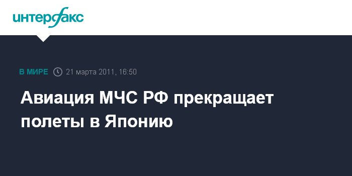 Москва. 21 марта. INTERFAX.RU - Авиация МЧС России приостанавливает полеты в Японию.
