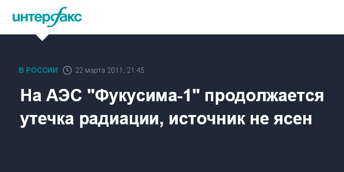 Вена/Токио. 22 марта. INTERFAX.RU - На аварийной АЭС "Фукусима-1" продолжается излучение радиации, источник которой пока точно не определен, заявил представитель МАГАТЭ Джеймс Лайонс на брифинге в Вене во вторник.