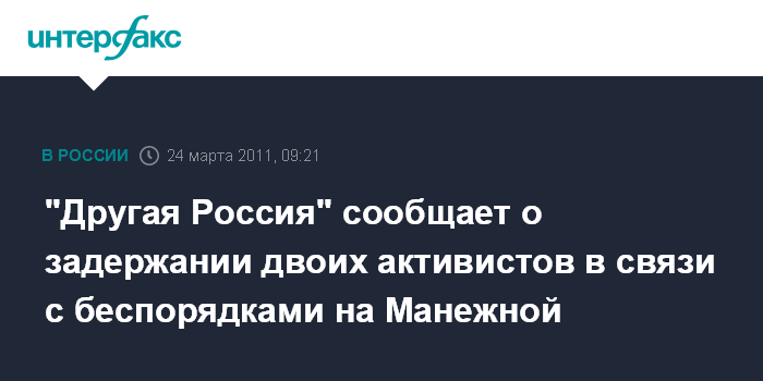 "Другая Россия" сообщает о задержании двоих активистов в связи с беспорядками на Манежной