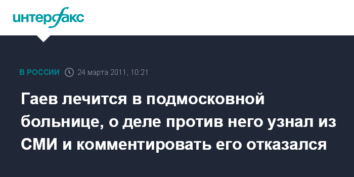 Гаев лечится в подмосковной больнице, о деле против него узнал из СМИ и комментировать его отказался