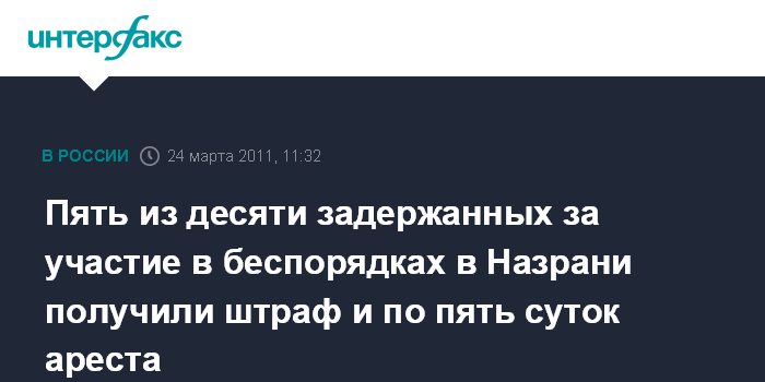 Пять из десяти задержанных за участие в беспорядках в Назрани получили штраф и по пять суток ареста