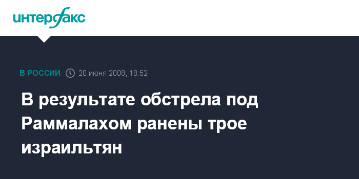 Москва. 20 июня. INTERFAX.RU - Неизвестные обстреляли группу израильских путешественников близ города Рамаллах, на Западном берегу Иордана. В результате обстрела трое израильтян ранены, сообщает Интернет-сайт израильской газеты "Гаарец".