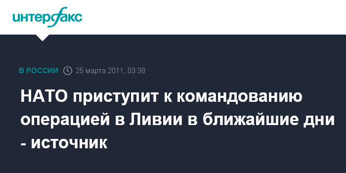 Брюссель. 25 марта. ИНТЕРФАКС - НАТО возглавит командование международной военной операцией в Ливии в начале следующей недели, сообщили "Интерфаксу" дипломатические источники в Брюсселе в четверг вечером.