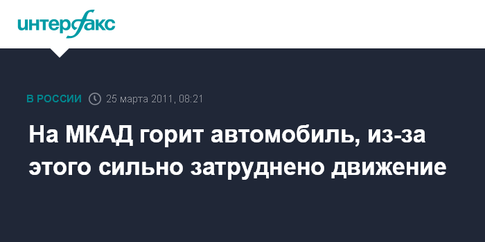 Москва. 25 марта. INTERFAX.RU - На внешнем кольце 73 км МКАД загорелся автомобиль "ВАЗ-2108", сообщил "Интерфаксу" источник в правоохранительных органах столицы.