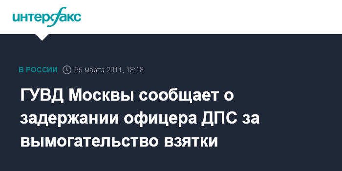 ГУВД Москвы сообщает о задержании офицера ДПС за вымогательство взятки