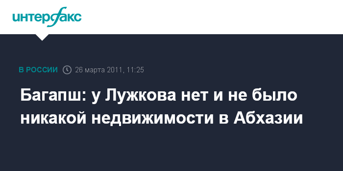 Москва. 26 марта. INTERFAX.RU - Президент Абхазии Сергей Багапш опровергает сообщения ряда СМИ о некоей собственности экс-мэра Москвы Юрия Лужкова в Абхазии. "У Лужкова никакой собственности в Абхазии не было и нет", - заявил С.Багапш "Интерфаксу" в субботу. "Видимо, некоторым журналистам просто уже не о чем писать. Все эти сообщения просто полная глупость", - подчеркнул он. Ранее ряд СМИ сообщили о том, что власти Абхазии намерены конфисковать собственность Ю.Лужкова в этой южной республике.