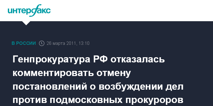 Генпрокуратура РФ отказалась комментировать отмену постановлений о возбуждении дел против подмосковных прокуроров