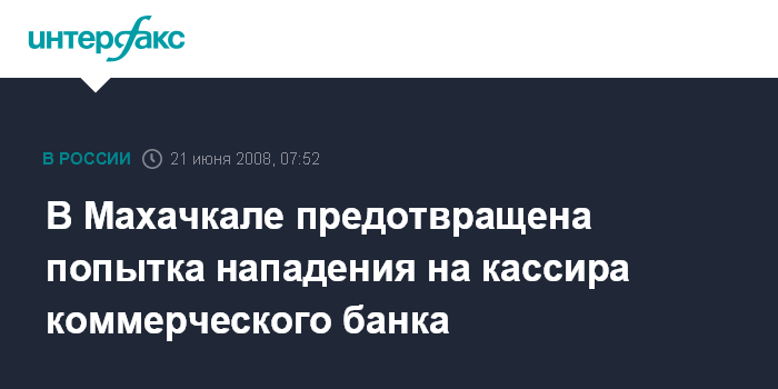 Ростов-на-Дону. 21 июня. ИНТЕРФАКС - Сотрудники милиции предотвратили нападение организованной группы лиц на кассира, отвечавшего за обмен валюты в коммерческом банке, сообщили агентству "Интерфакс-Юг" в правоохранительных органах республики Дагестан.