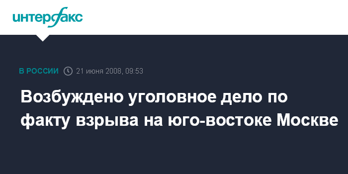 Возбуждено уголовное дело по факту взрыва на юго-востоке Москве