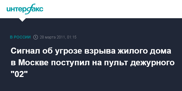 Сигнал об угрозе взрыва жилого дома в Москве поступил на пульт дежурного "02"