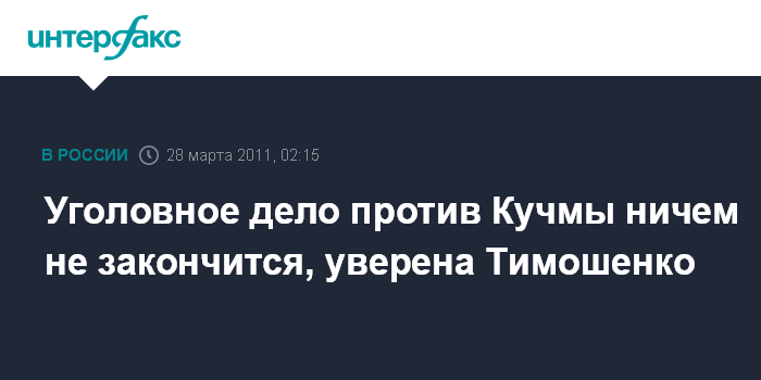 Киев. 28 марта. ИНТЕРФАКС-УКРАИНА - Лидер партии "Батькивщина" Юлия Тимошенко убеждена, что уголовное дело против экс-президента Леонида Кучмы ничем не закончится.