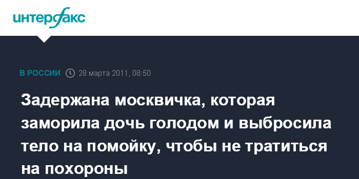 Задержана москвичка, которая заморила дочь голодом и выбросила тело на помойку, чтобы не тратиться на похороны