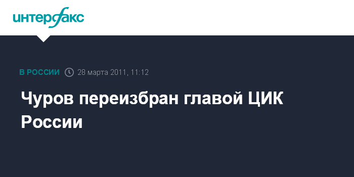 Москва. 28 марта. INTERFAX.RU - Председателем Центральной избирательной комиссии РФ переизбран действующий глава ЦИК Владимир Чуров, передал корреспондент "Интерфакса".