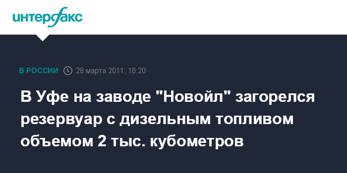 Уфа. 28 марта. INTERFAX.RU - На уфимском заводе "Новойл" в понедельник возник пожар.